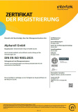 Seit 2007 ist alpharoll ISO-zertifiziert. Unser Qualitätsmanagement-System entspricht den strengen Anforderungen der International Standardisation Organisation und wird jährlich von autorisierten Inspektoren daraufhin überprüft.