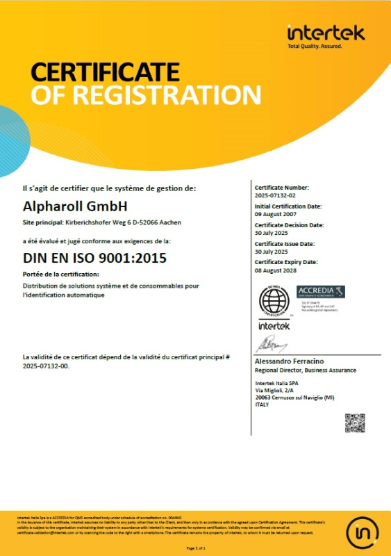 alpharoll est certifiée ISO depuis 2007. Notre système de management de qualité répond aux strictes exigences de l'Organisation internationale de normalisation et est contrôlé annuellement par des inspecteurs accrédités.